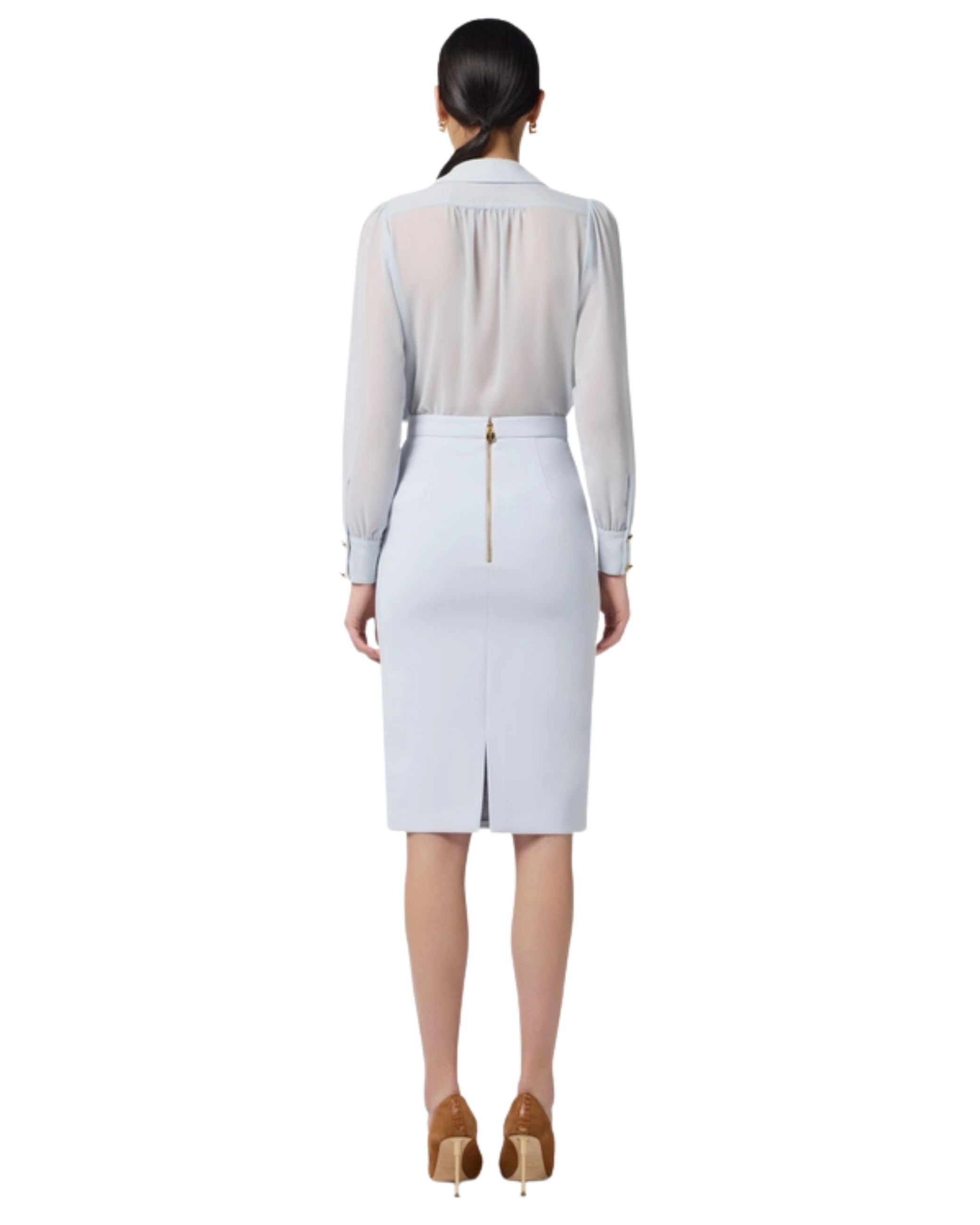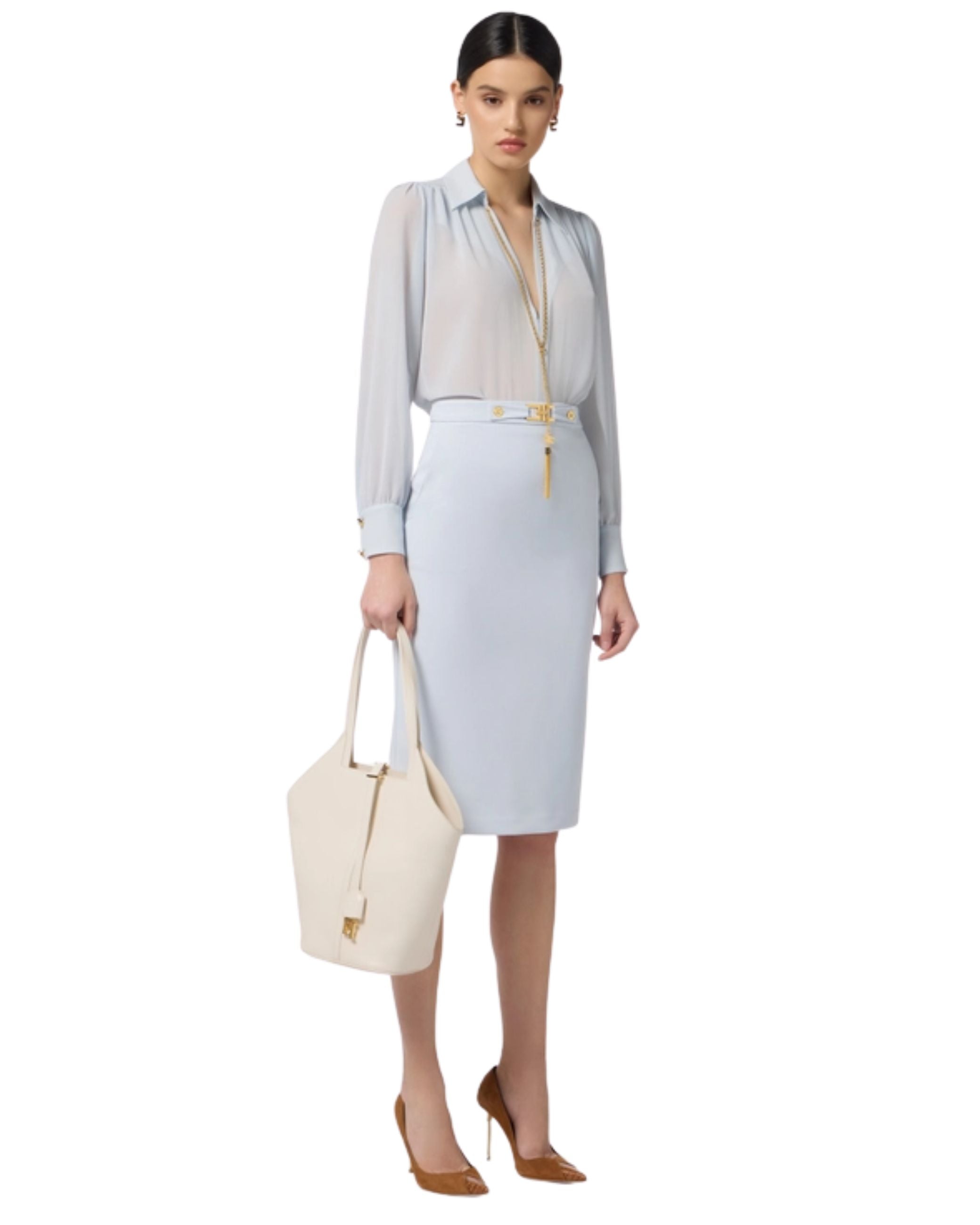 Elisabetta Franchi Camicia scollo V in georgette con pendente logo