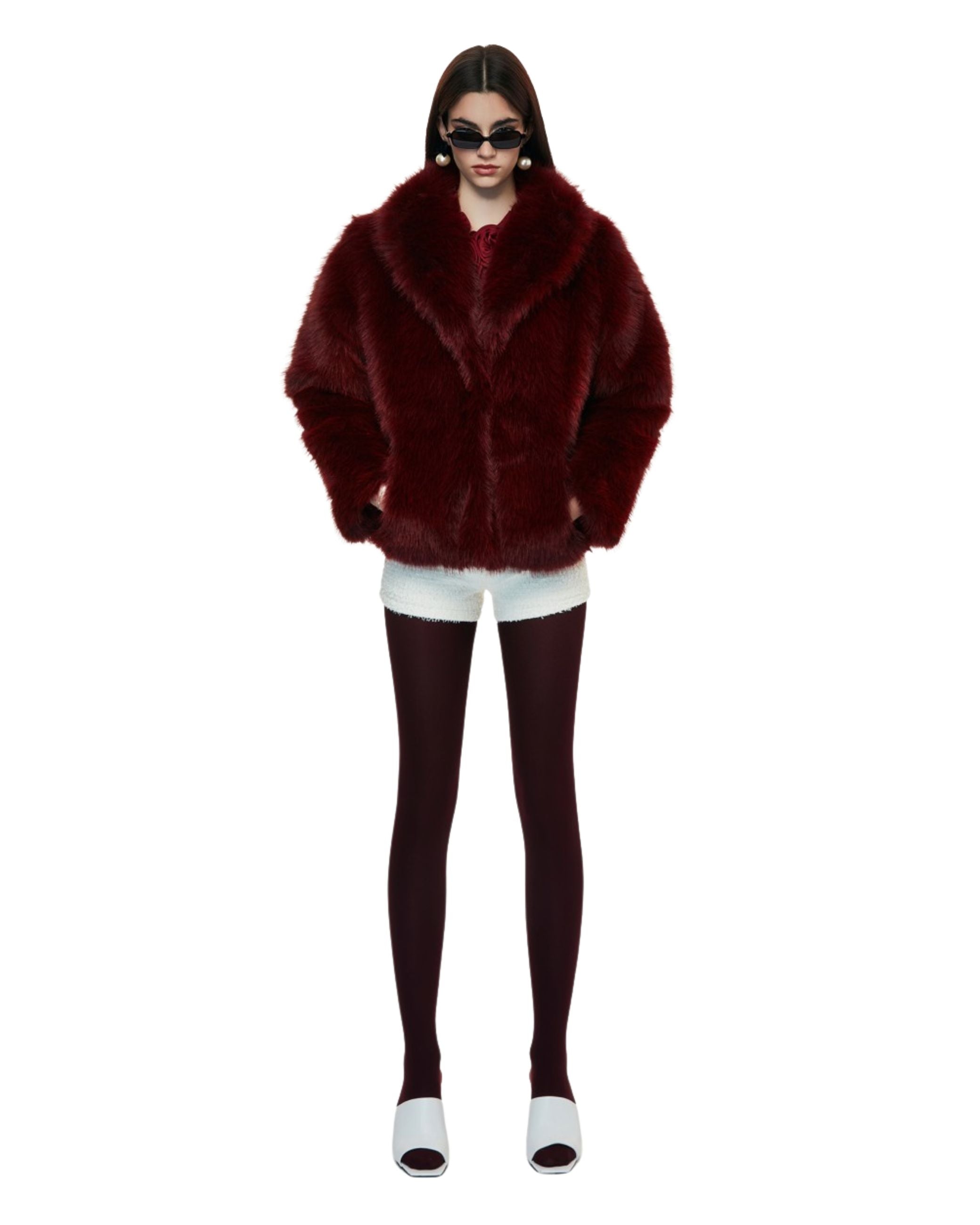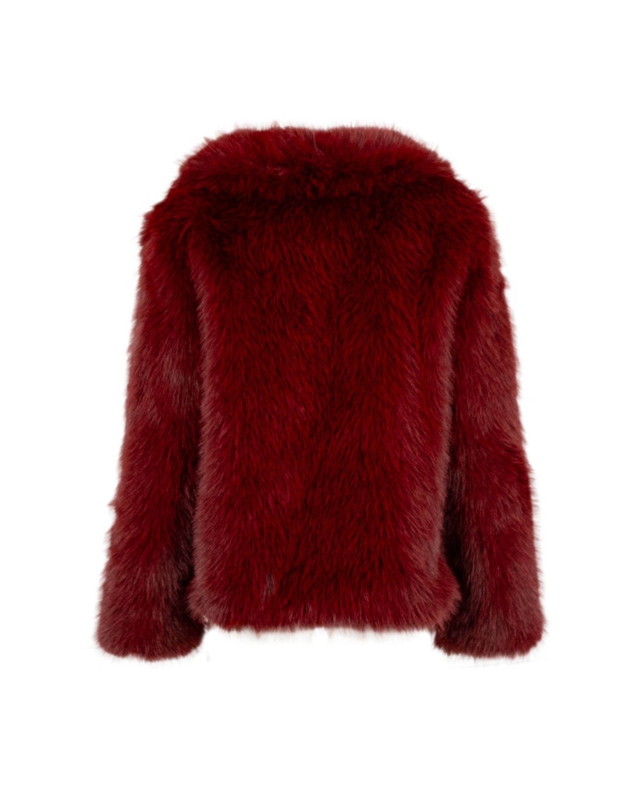 Eco-pelliccia della nuova collezione fall winter 25/26 del brand Odi Odi modello voluminoso e corto con collo rever, chiusura frontale a scomparsa.