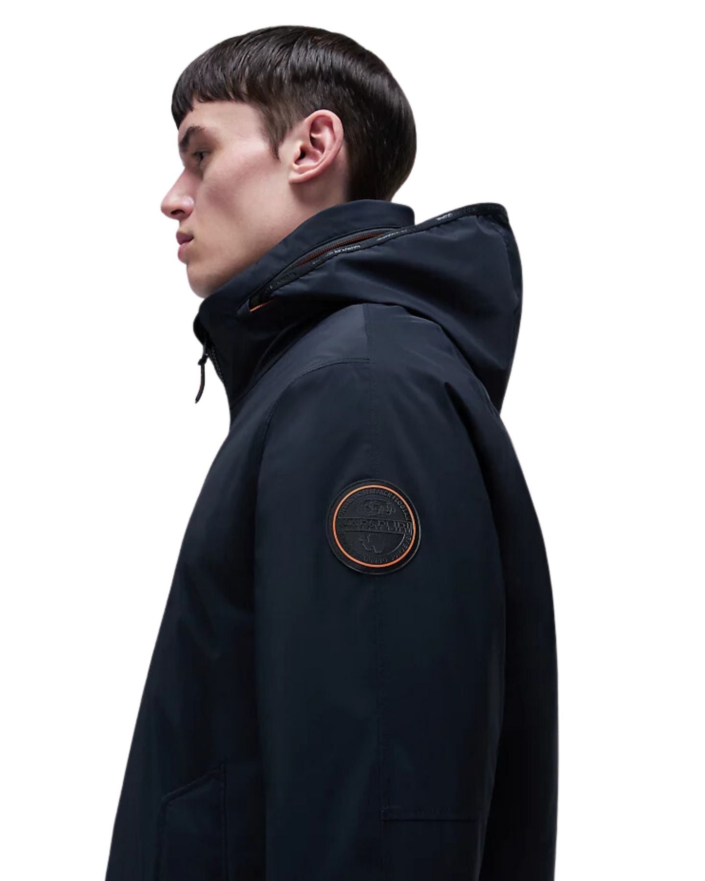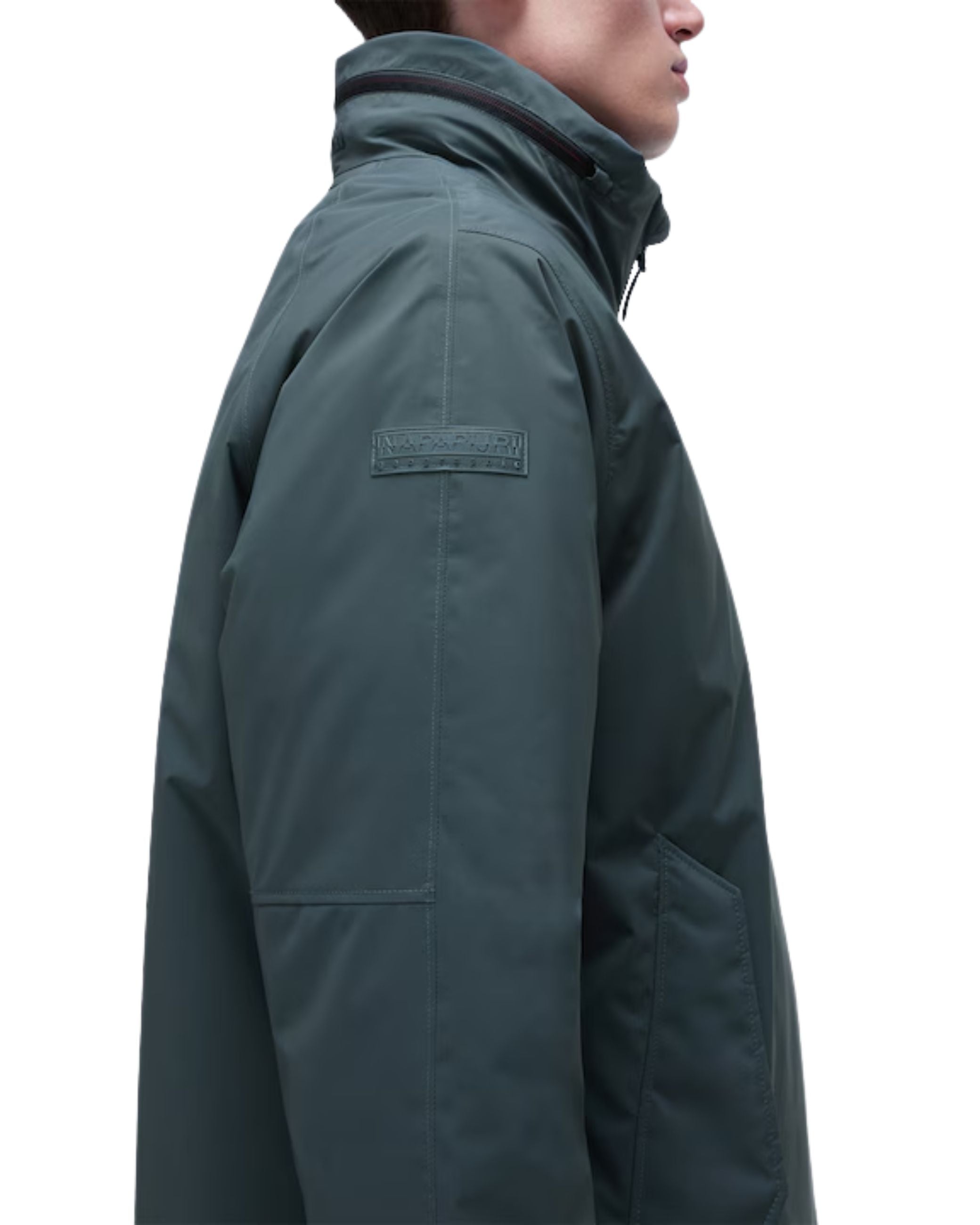 Giubbino della nuova collezione Napapijri fall winter 24/25. Giubbino realizzato con un tessuto impermeabile e traspirante, cappuccio a scomparsa, collo alto..