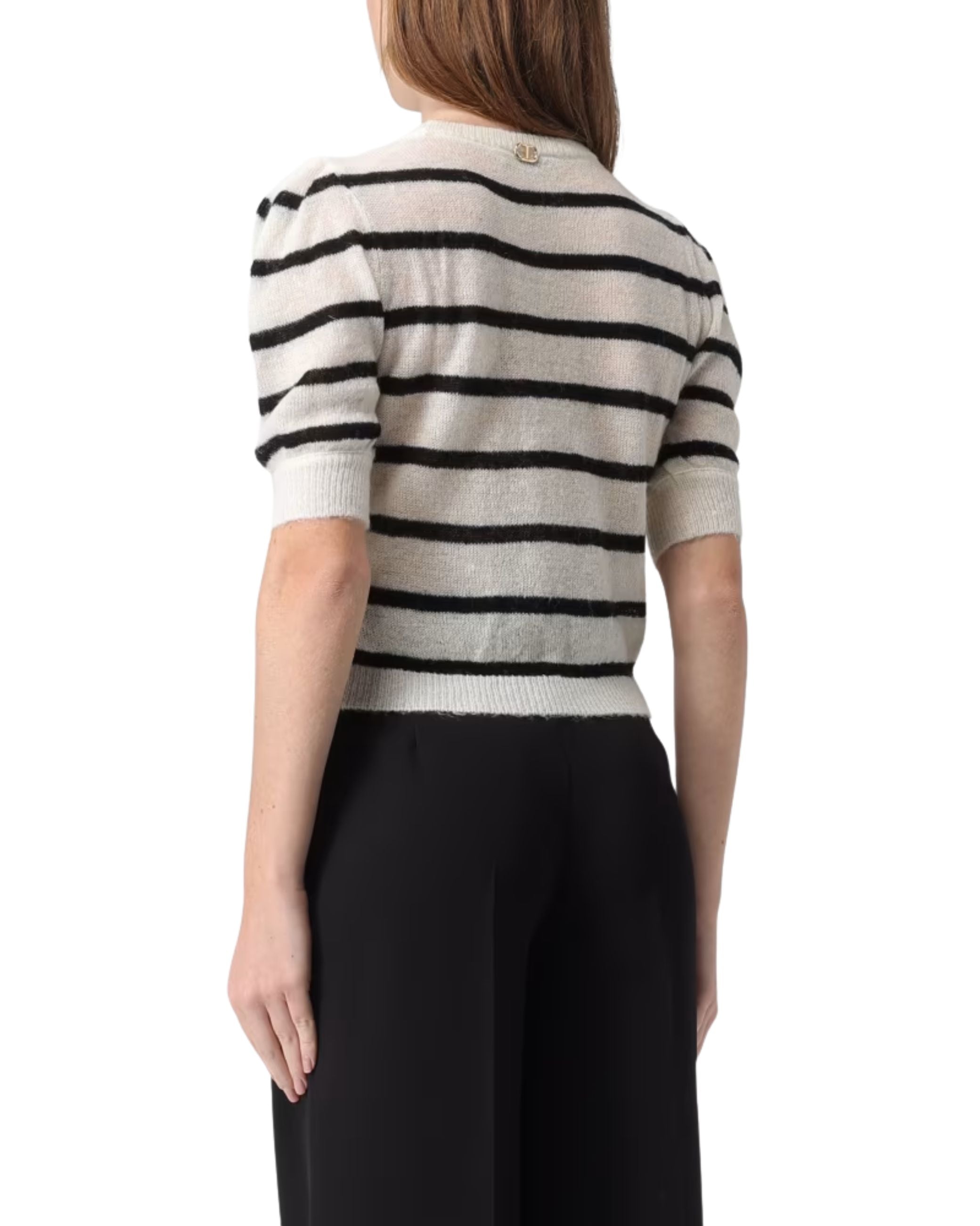 Twinset Maglia cropped a righe in misto mohair