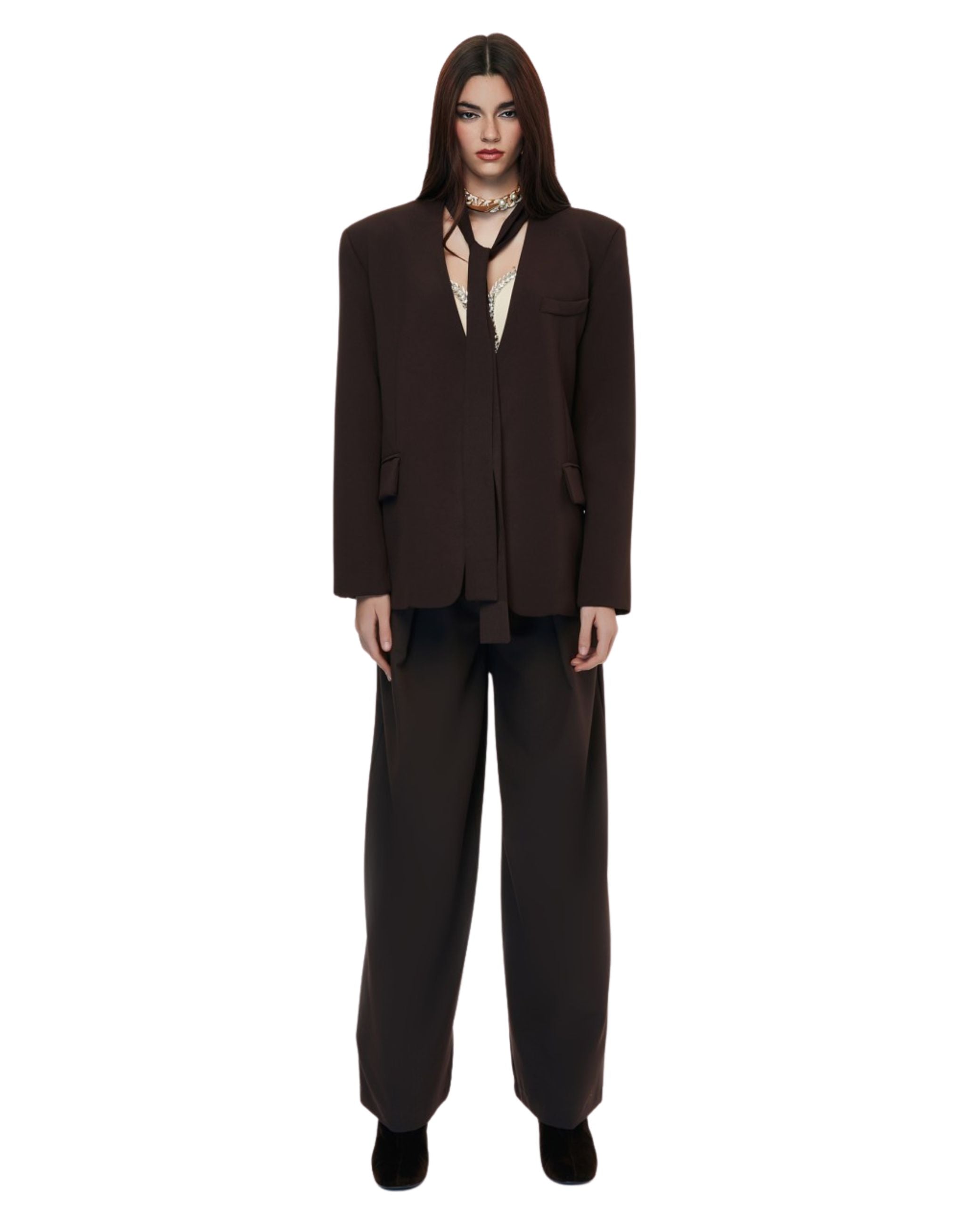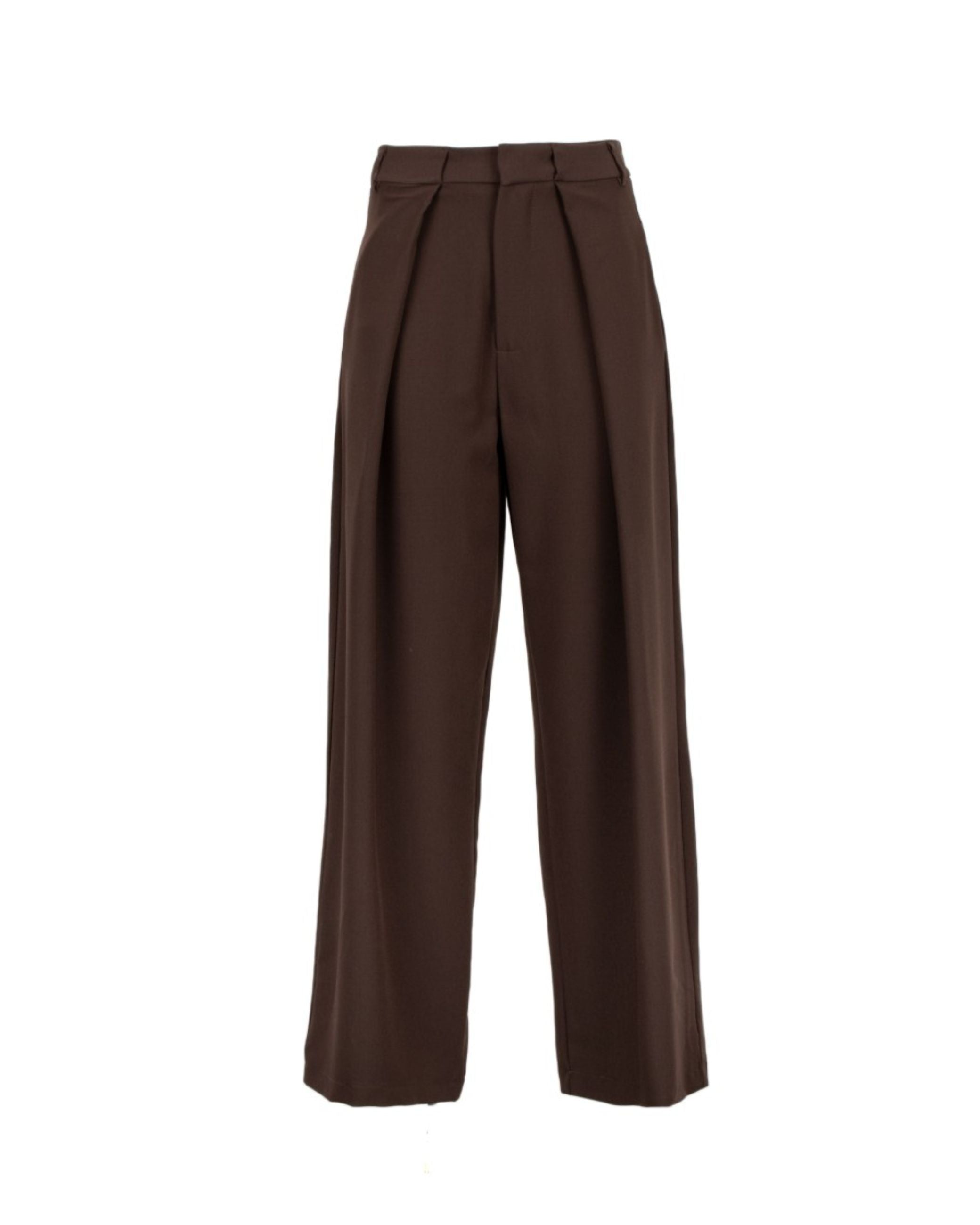 Pantalone della nuova collezione fall winter 25/26 del brand Odi Odi modello a palazzo in vita alta e a gambia ampia con doppia pince frontale.