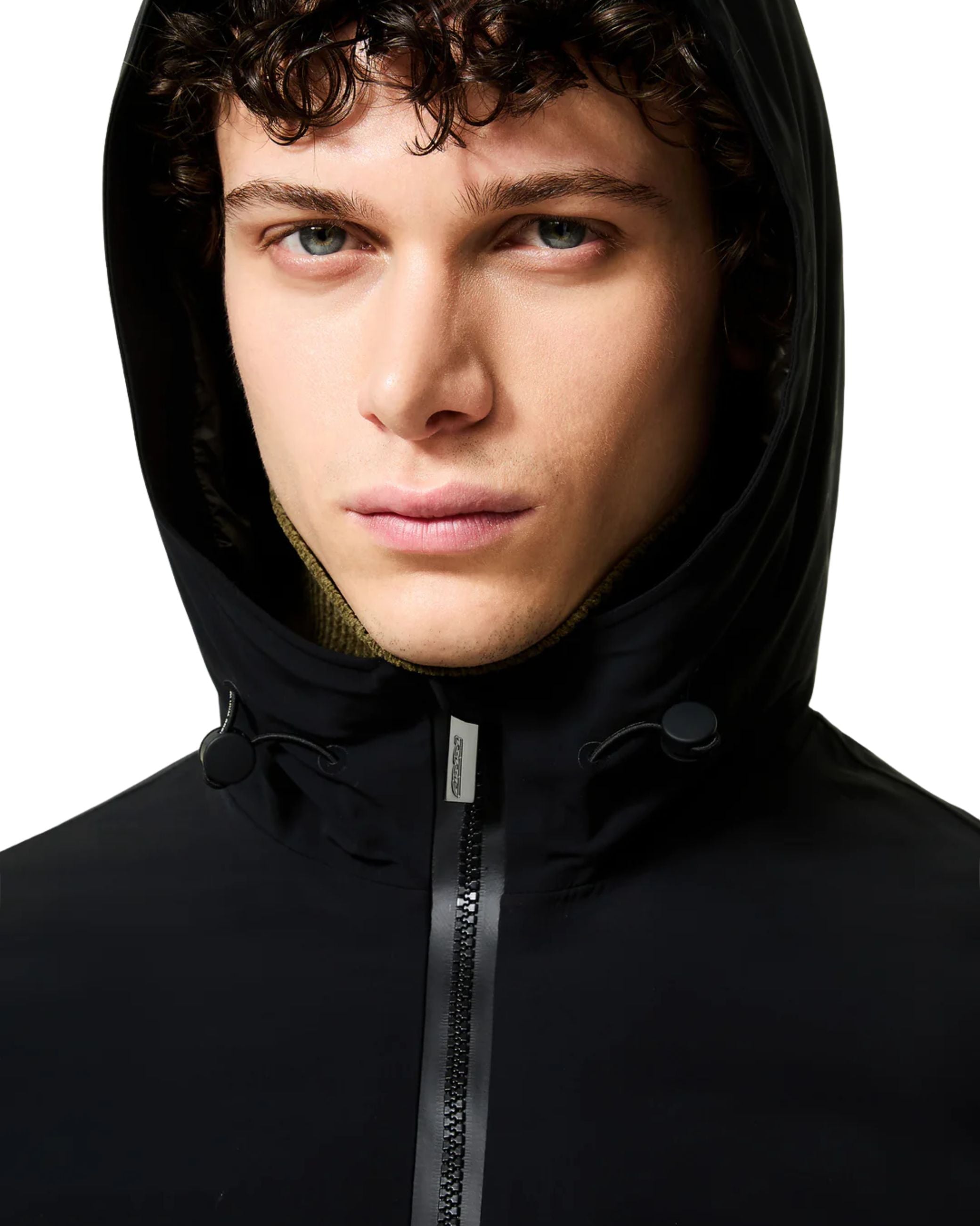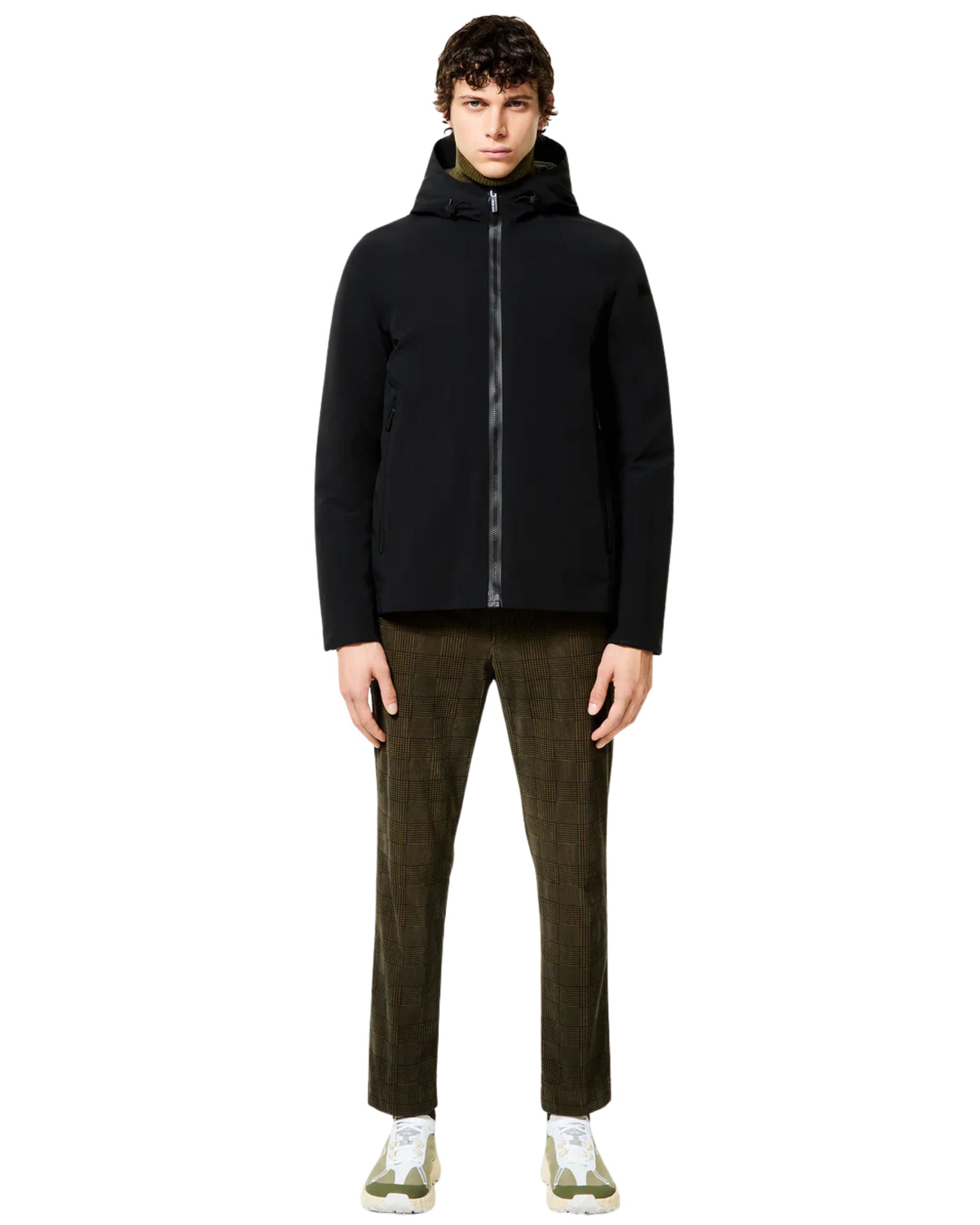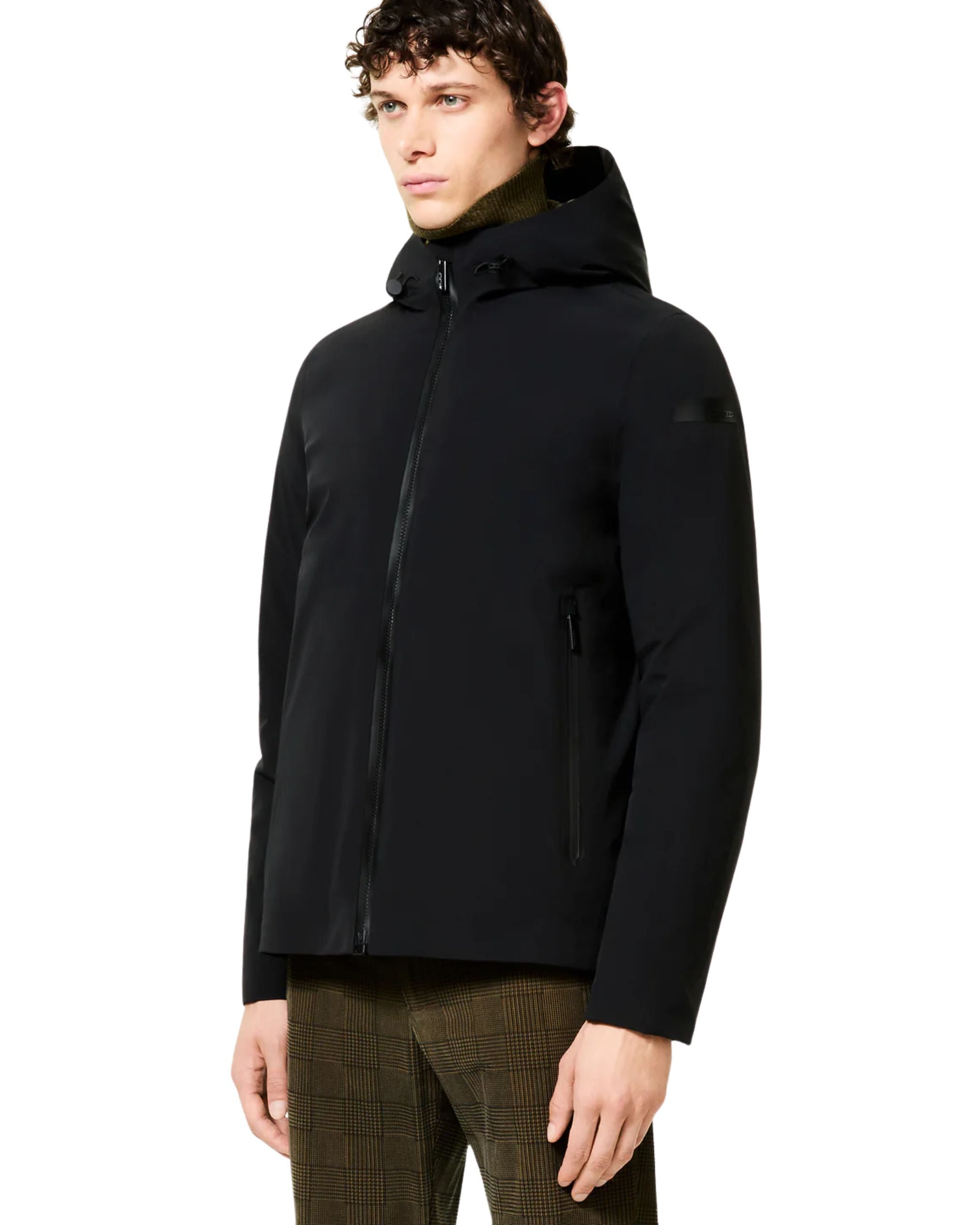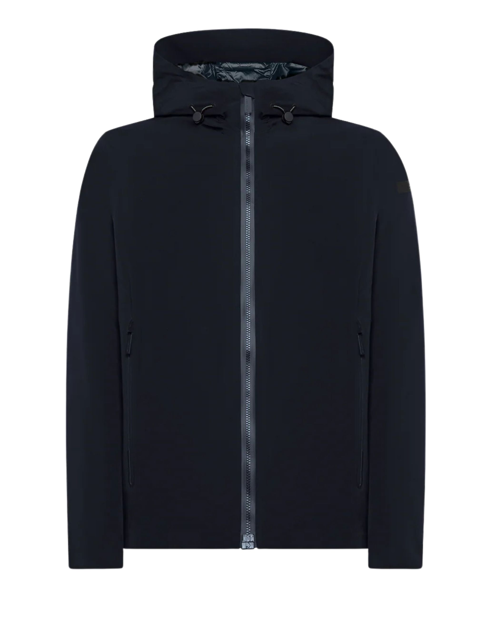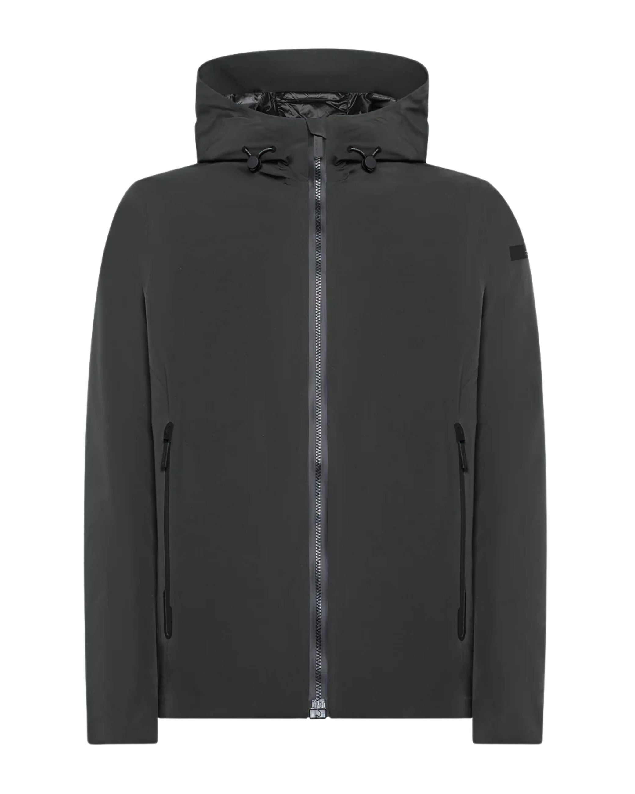 Giubbino della nuova collezione RRD collezione fall winter 25/26 modello Montecristo Floating Storm Jkt realizzato in tessuto tecnico impermeabile e antivento, ha una struttura leggera ma calda ed un fit asciutto, chiusura con cursore magnetico, cappuccio fisso regolabile.