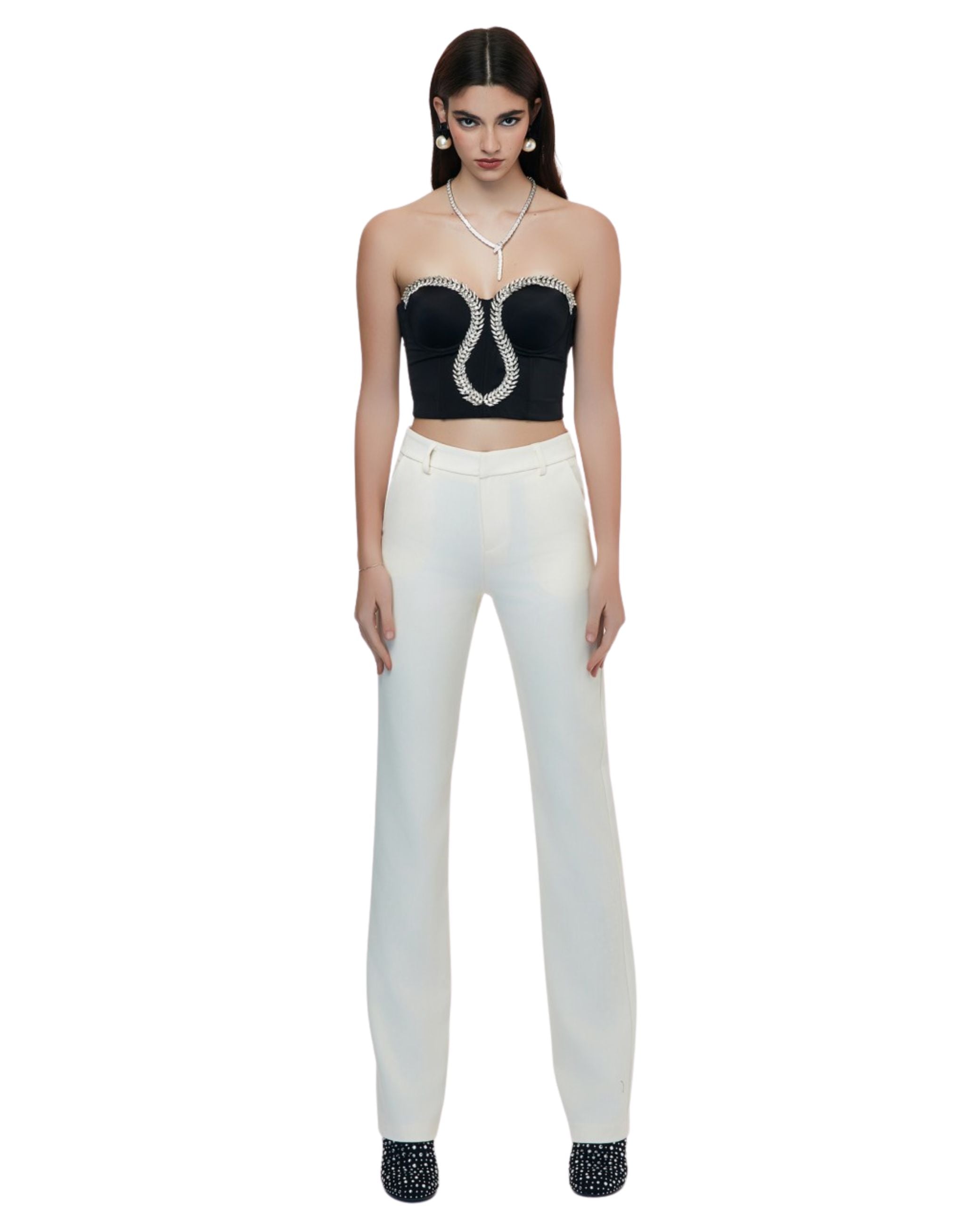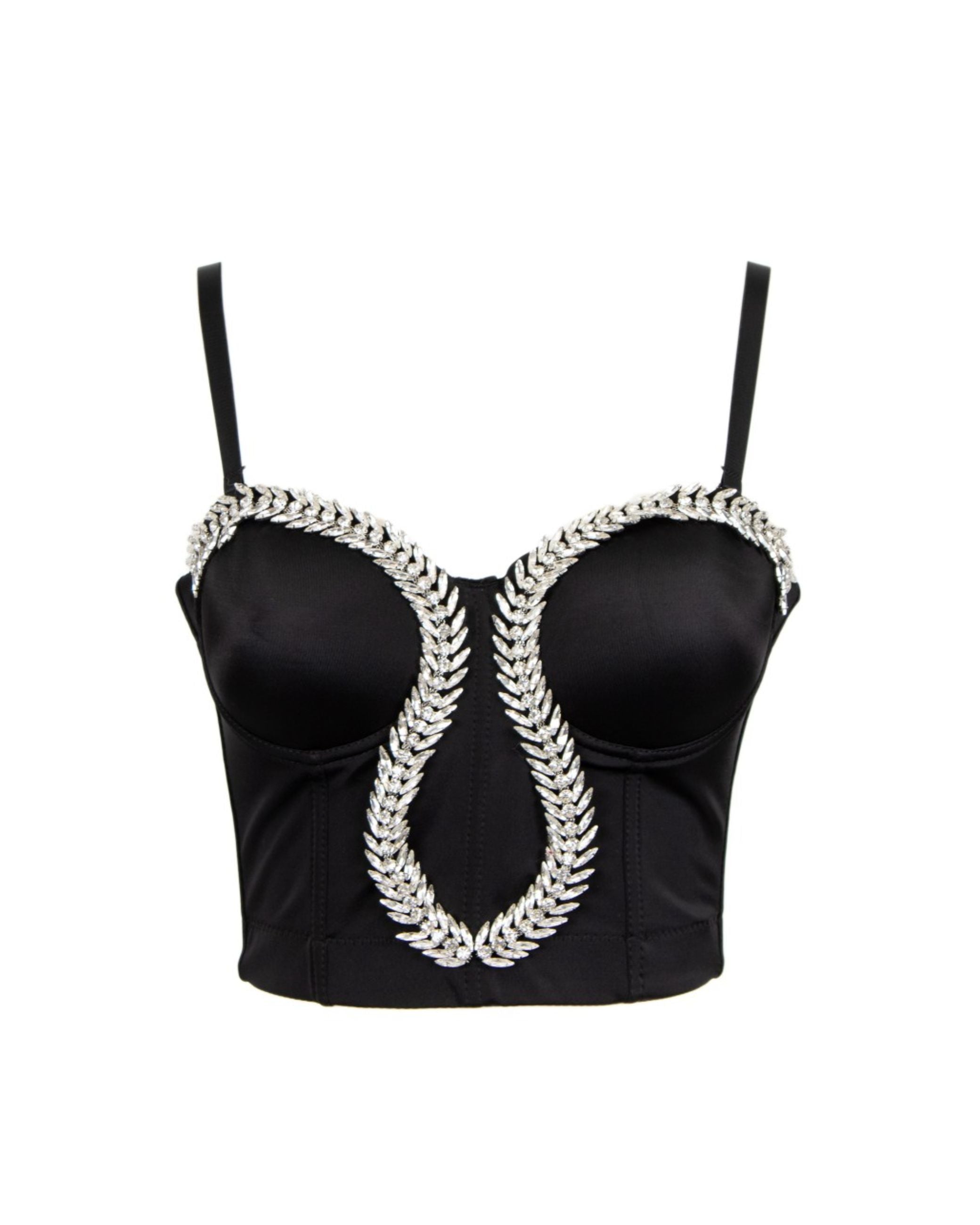Top della nuova collezione fall winter 25/26 del brand Odi Odi modello bustier con spalline sottili, scollo a cuore con coppe preformate, decorato con strass sul davanti.