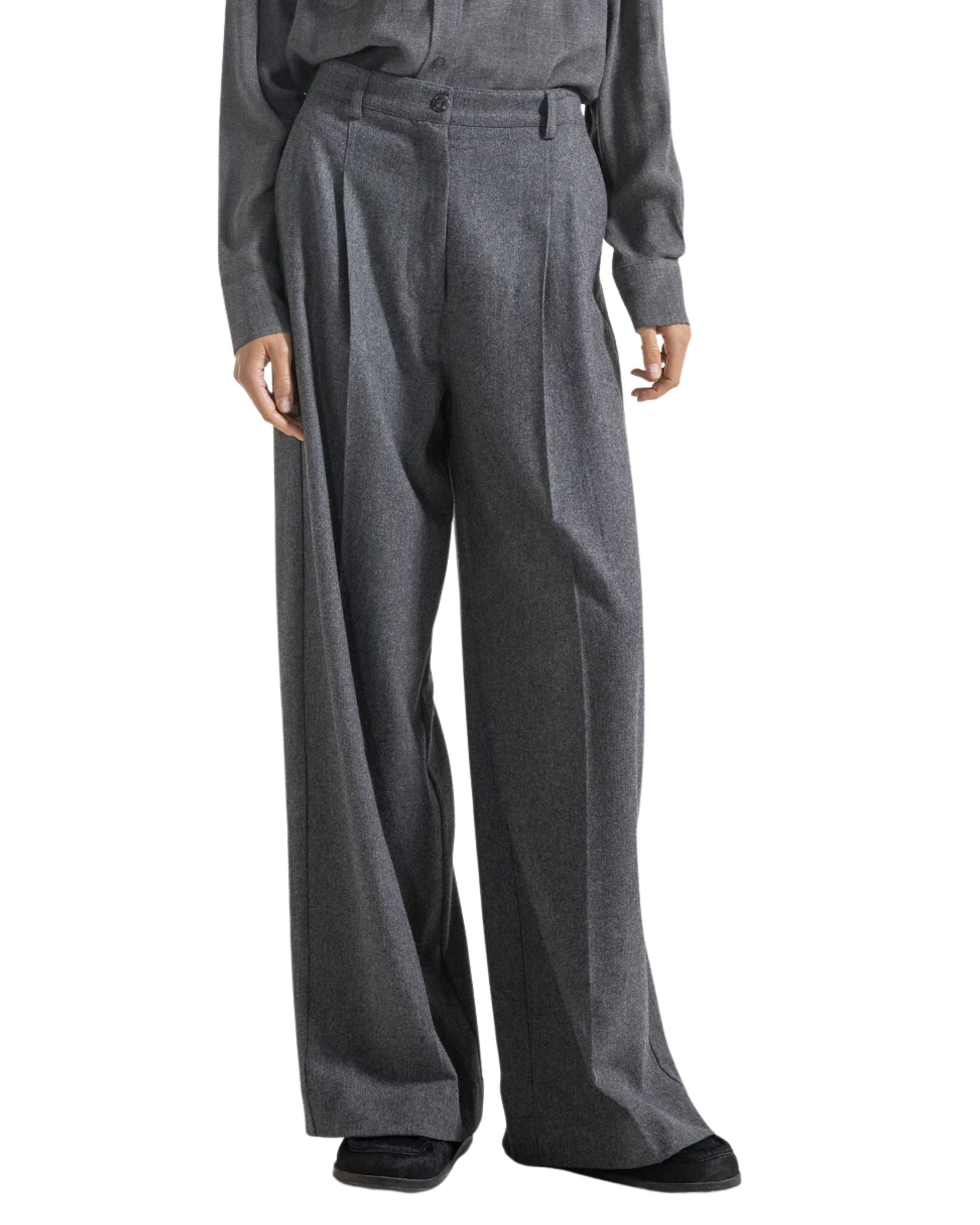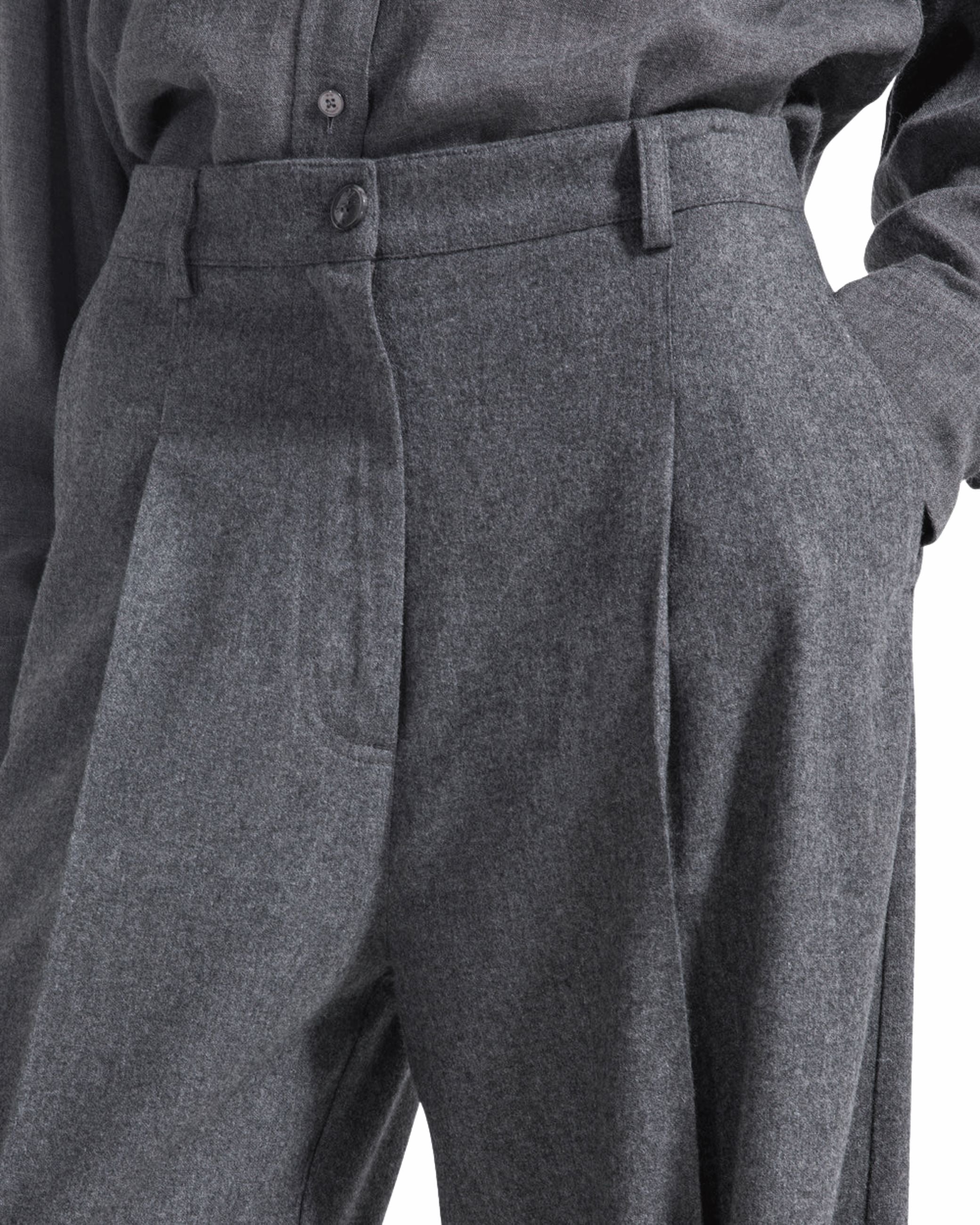 Pantalone della nuova collezione fall winter del brand 19.70 Seventy realizzato in flanella, modello a vita alta, tasche all'americana e tasche a file sul retro.