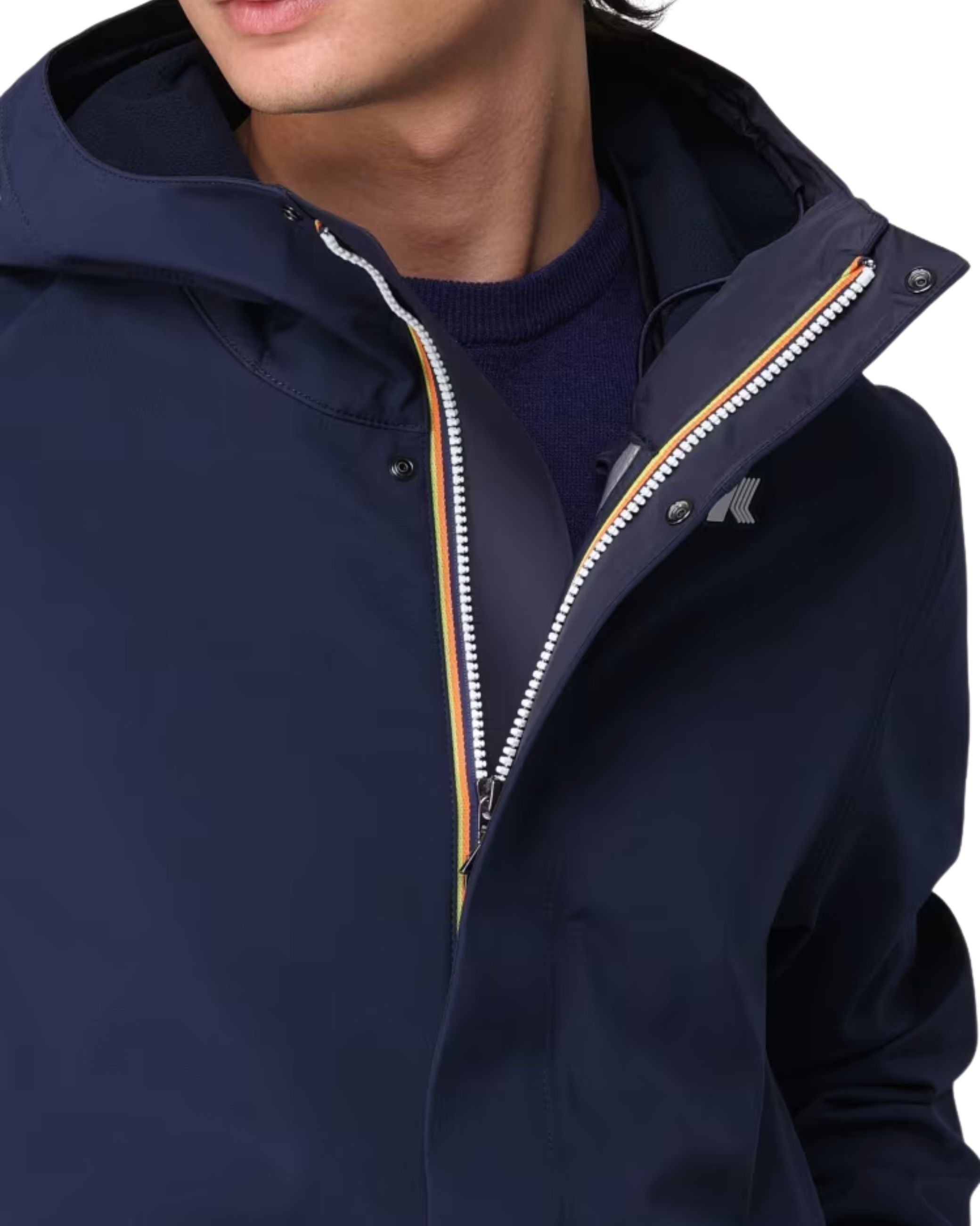Giubbino del brand K-way della stagione fall winter 25/26 modello Thomas Bonded, dal tessuto idrorepellente rivestito internamente da uno strato di pile, ha un fit slim.