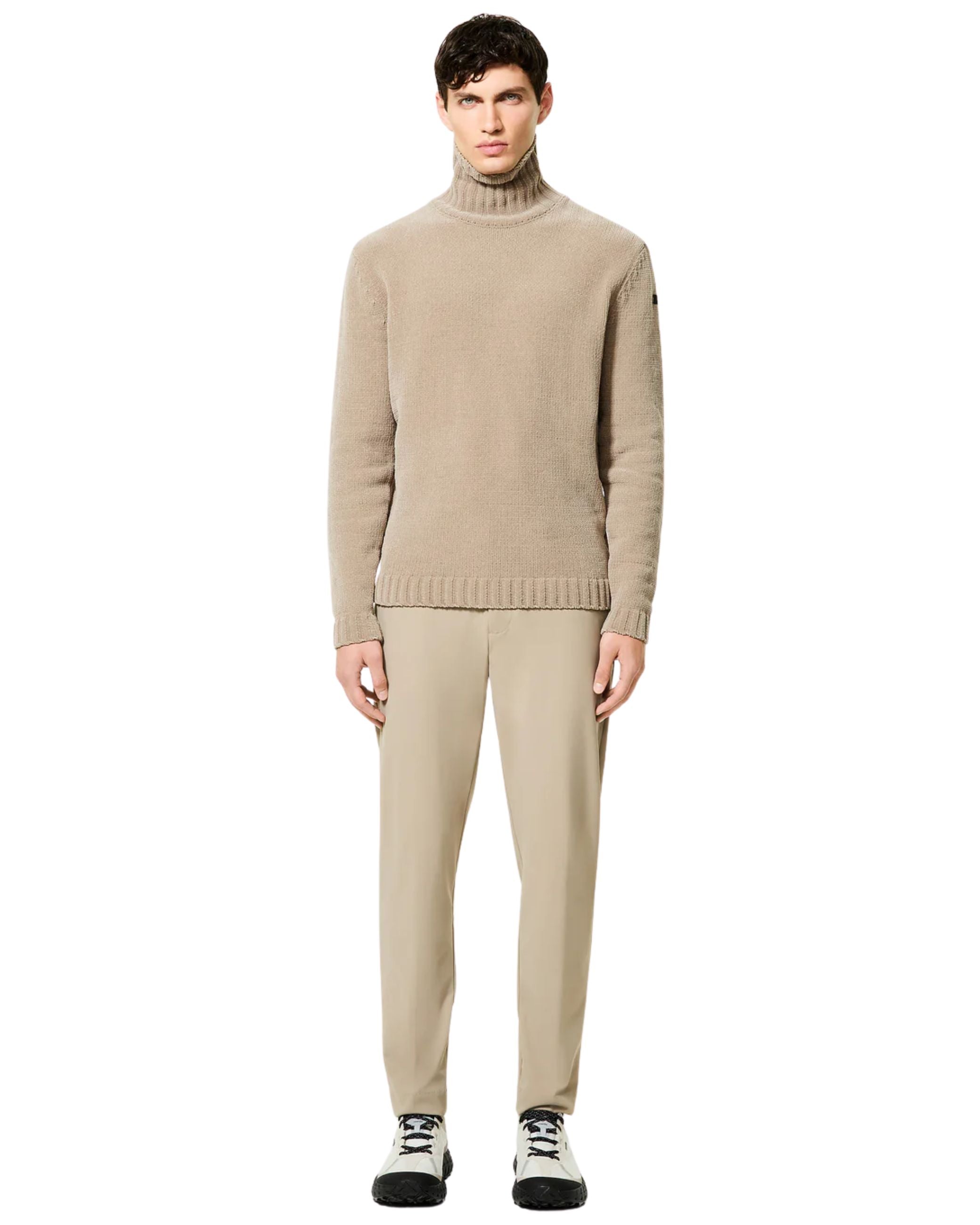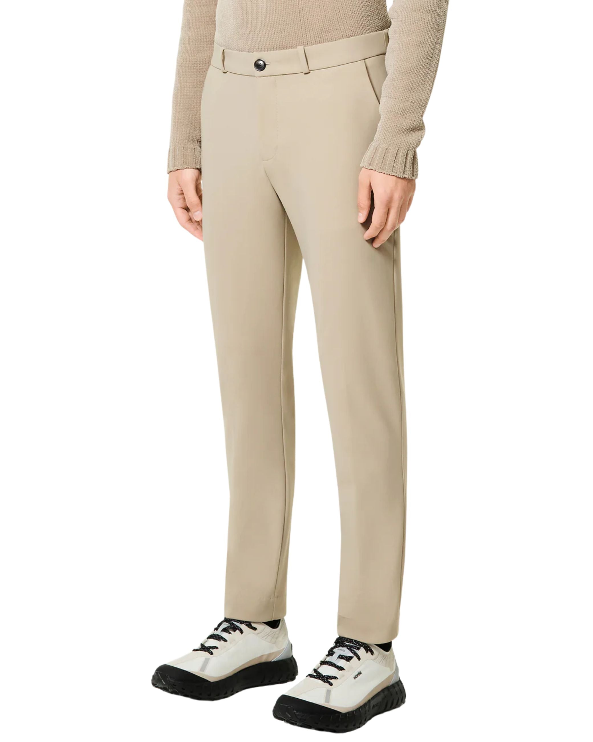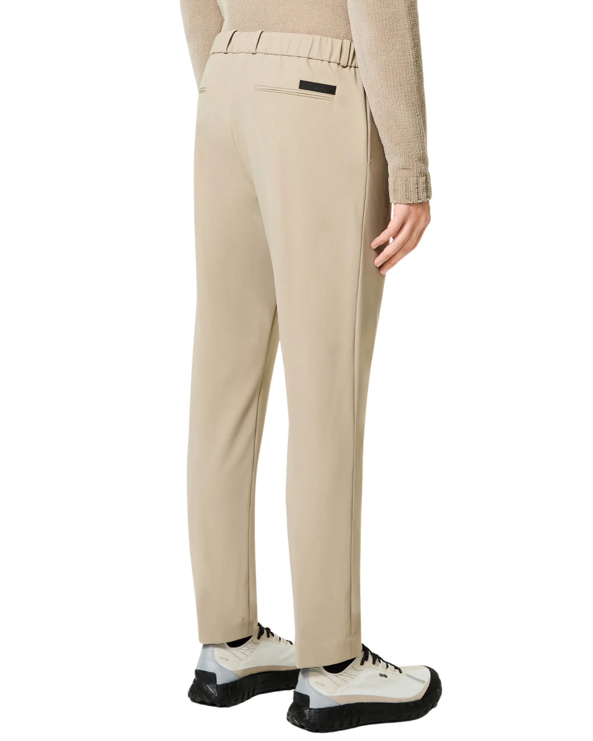 Pantalone della nuova collezione RRD collezione fall winter 25/26 modello Surflex Winter Chino Jo Pant realizzato in tessuto tecnico stretch dal finish opaco, ha vita media, è dotato di passanti e coulisse interna, elasticizzato sul retro, chiusura con zip e bottone in corno.